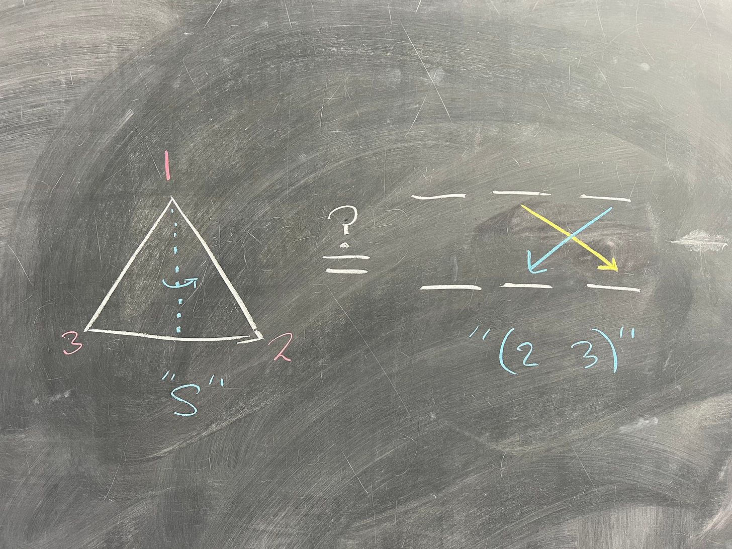 What's weird is that all three of these groups appear to actually be the same group. If we relabeled each swap as g, then all three of these sets would look identical, and the underlying group would appear to be the same. This is what we're going to talk about today.