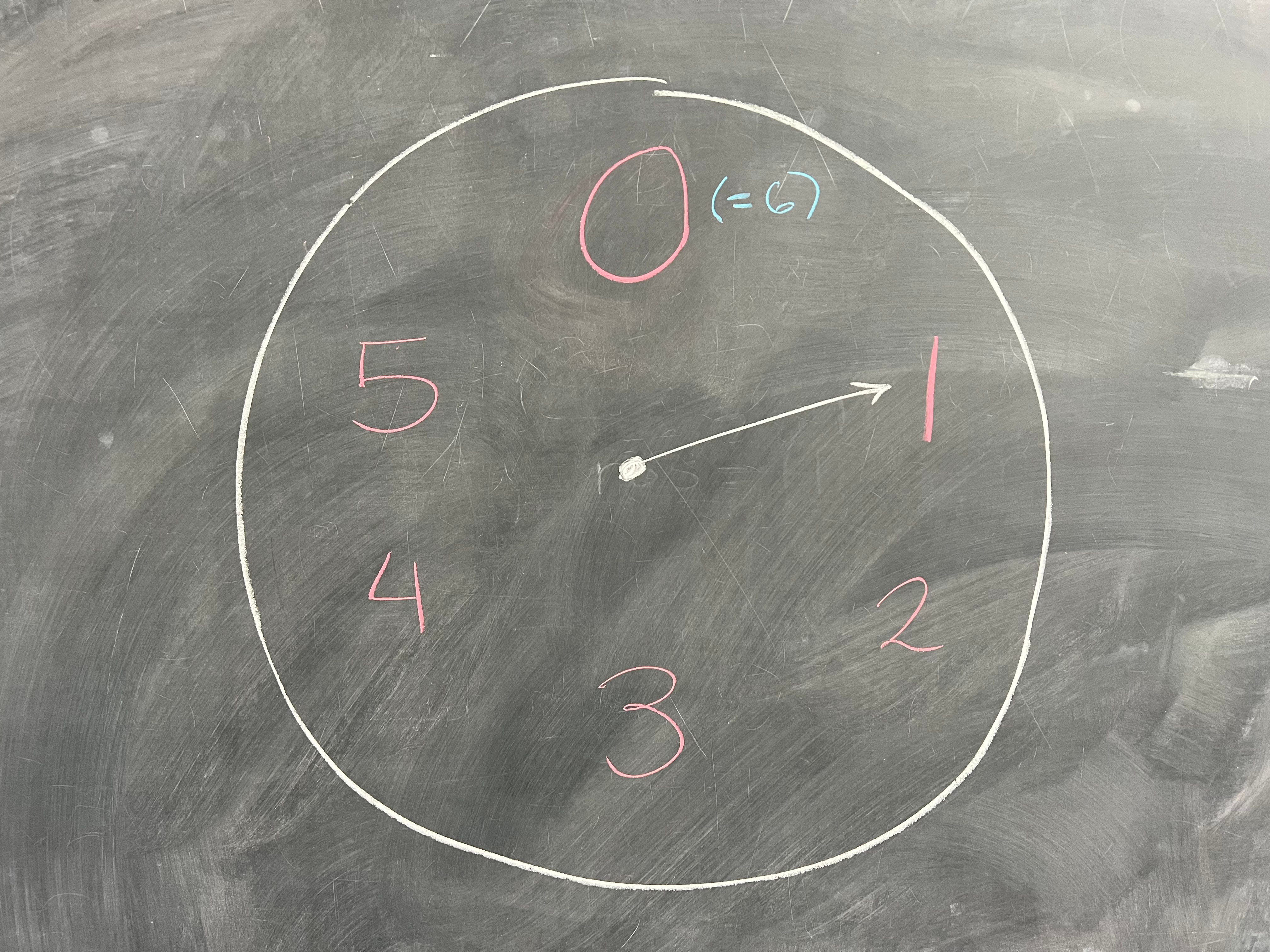 Last time, we saw that ℤ_12 has a subgroup of size 6 - namely, the subgroup containing 0, 2, 4, 6, 8, and 10, which we called H. (Yes, this is a different H than the one we had just before.) Let's think about another group for a moment - ℤ_6. We can think of ℤ_6 as being like a much smaller clock, with only six "hours":
