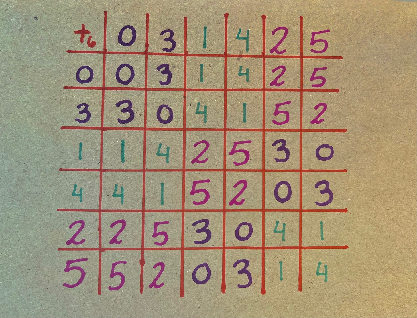 If we write down a table showing the addition of these elements, but sort them by coset, something weird happens: