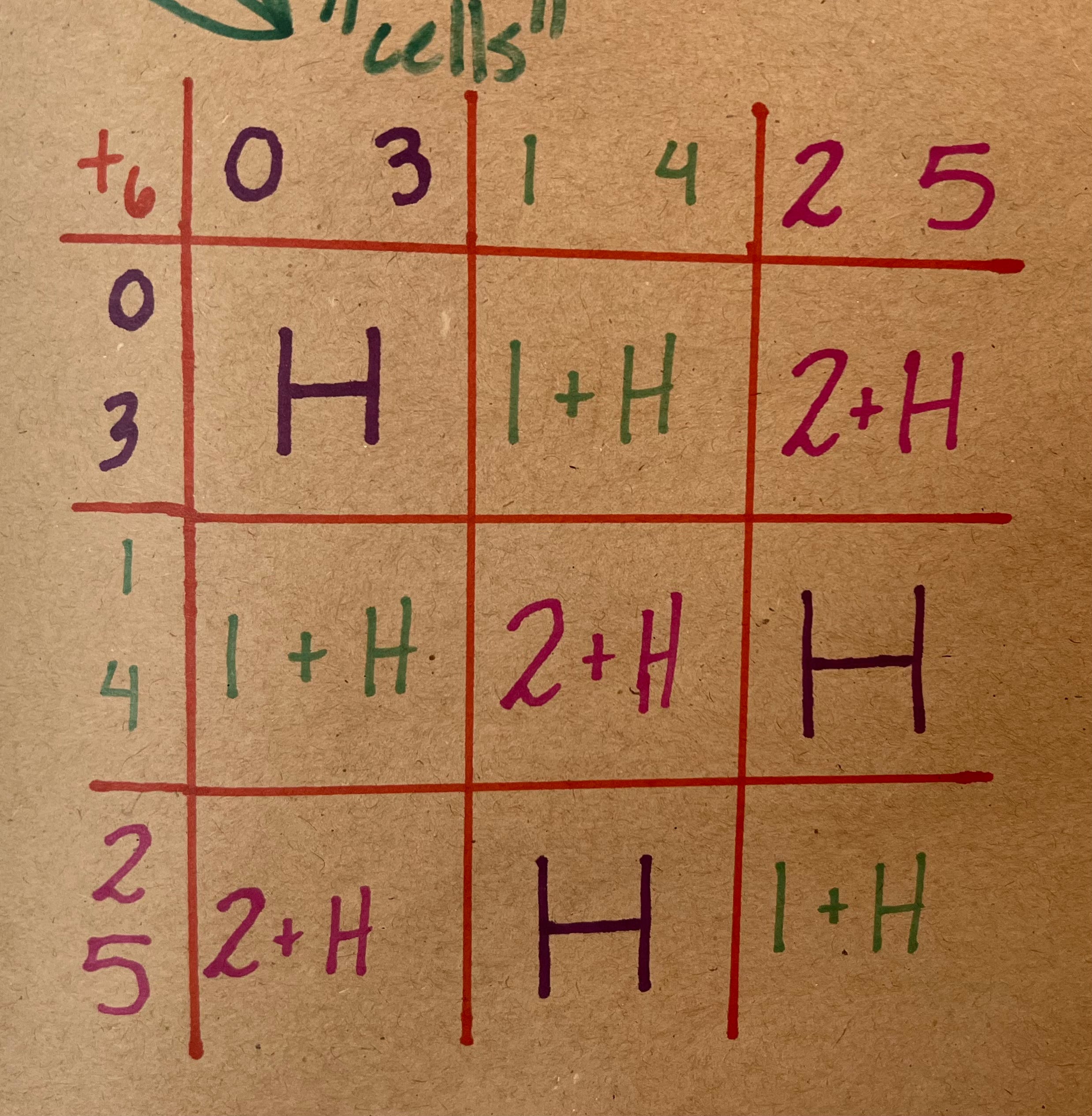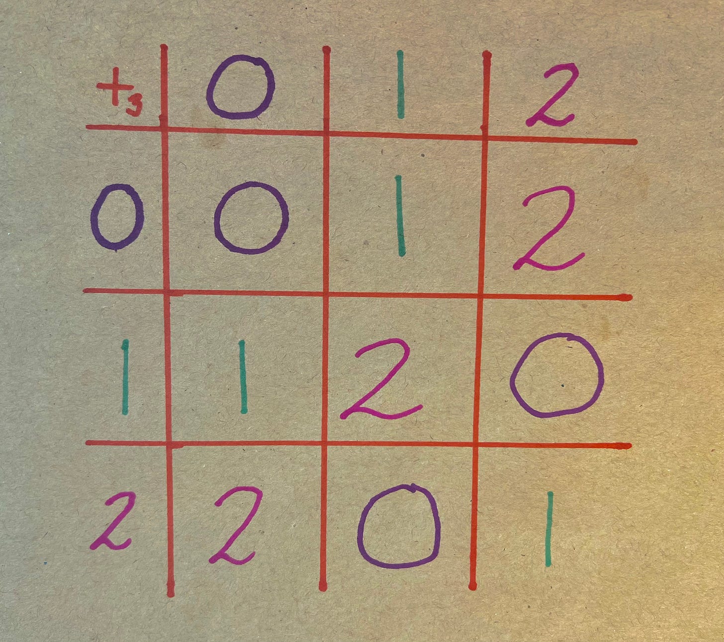 If I just drop the H entirely, this table looks suspiciously like another table, that of ℤ₃: